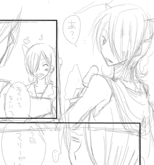 今は下書き中です。…下書きなのか…これ?ラフじゃね?これにペン入れなんて無理じゃね?